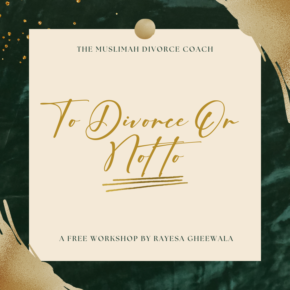 If you’re ready to gain clarity, confidence, and peace in your decision-making process, I invite you to watch my To Divorce Or Not To: The Ultimate Divorce Decision Making workshop. This workshop is designed to guide you through your journey of self-discovery, healing, and making decisions deeply rooted in Taqwa and Tawakkul.